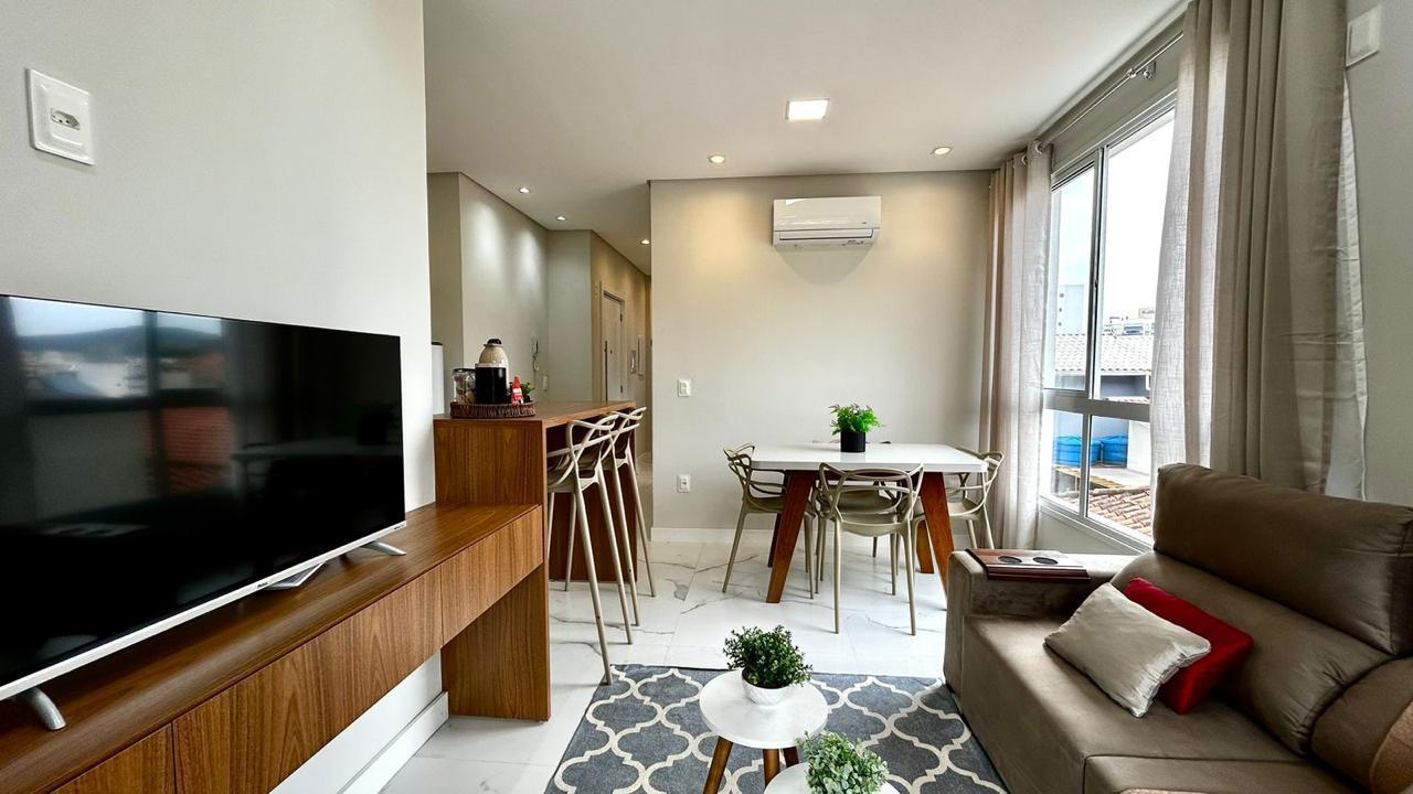 apartamento de três dormitórios, sendo uma suíte, sacada com churrasqueira, uma vaga de garagem. imovel localizado a 450 metros do mar da praia de Palmas.