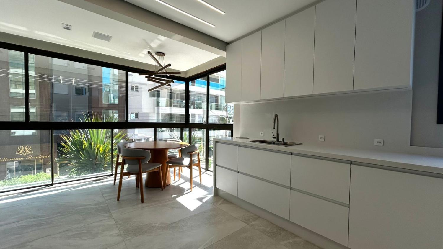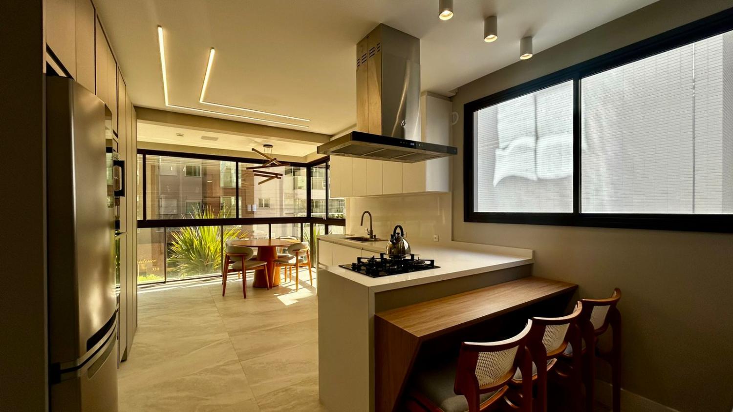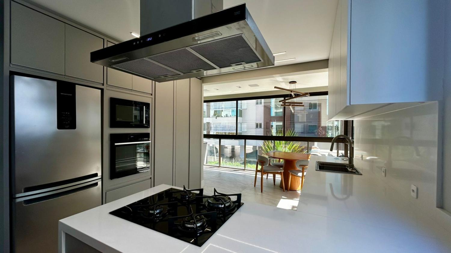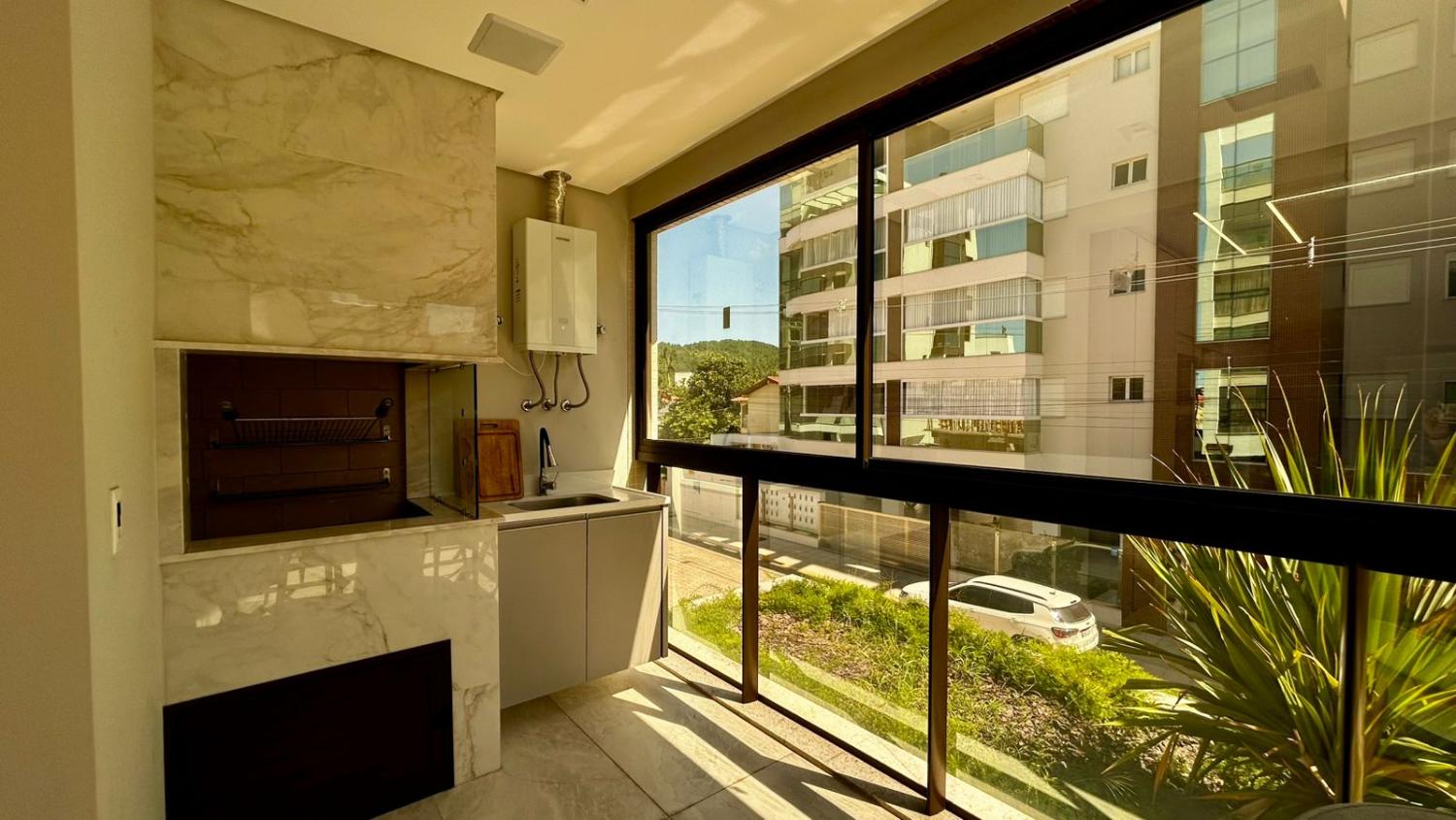 Um dos grandes destaques do imóvel é a ampla sacada com churrasqueira, perfeita para momentos de lazer e confraternização. Além disso, a sacada possui vista para a rua, trazendo mais sensação de espaço, iluminação natural e ventilação.